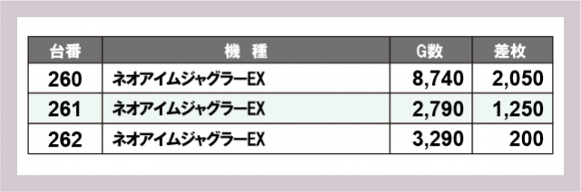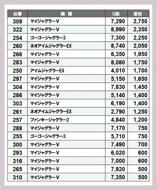 ジャグラー差枚ランキング