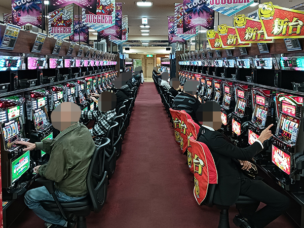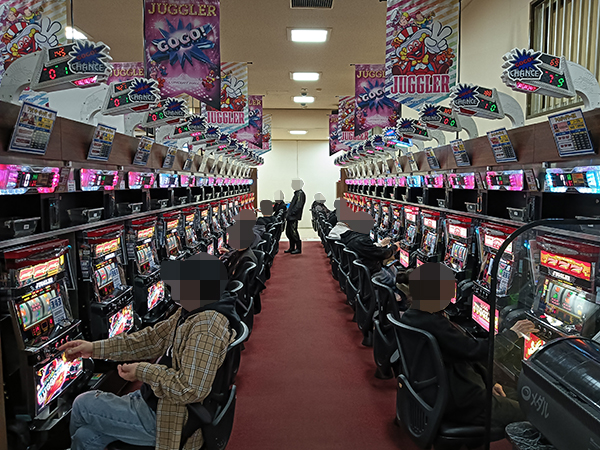 20円パチスロに目を向けると「ネオアイムジャグラーEX」や「ハッピージャグラーVⅢ」、「ファンキージャグラー2」などのジャグラーシリーズが微笑ましい状況。機種性能を最大限に発揮するプレイヤーが複数見られた。