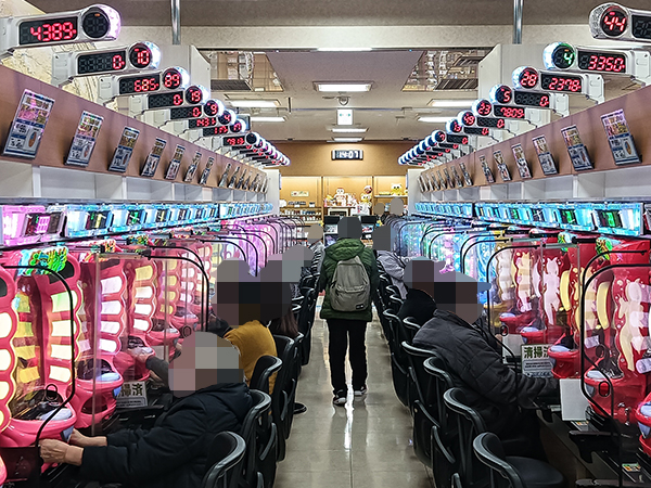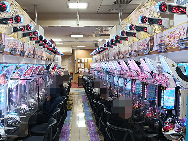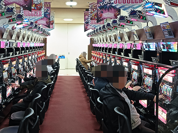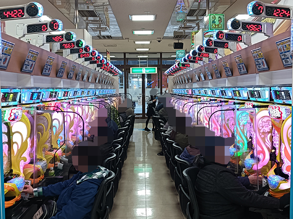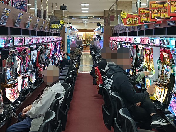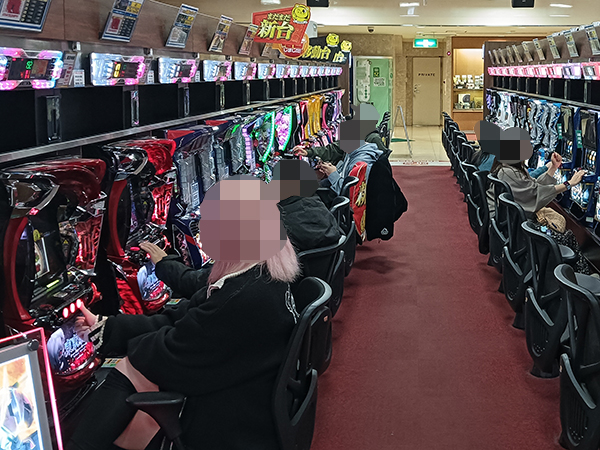 取材時は既に多くのプレイヤーであふれており、パチンコ・パチスロを問わず楽しげな表情でいっぱいだった。