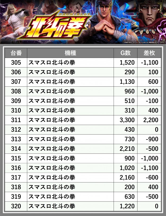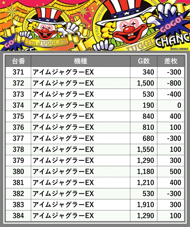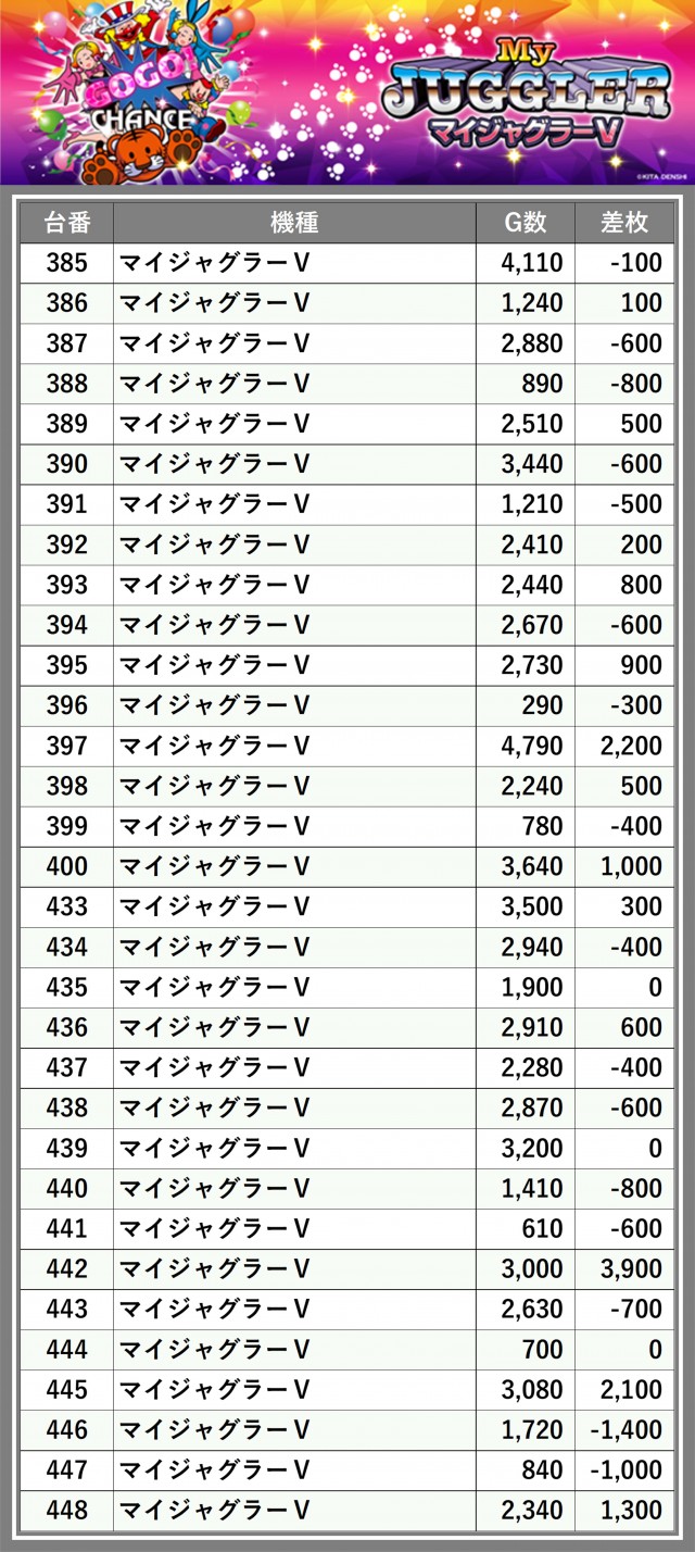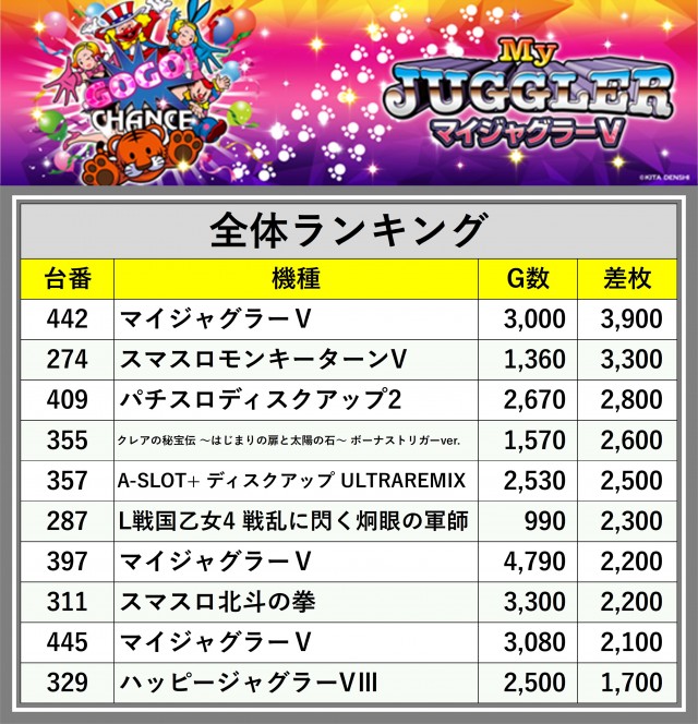 ※差枚数順に掲載しています