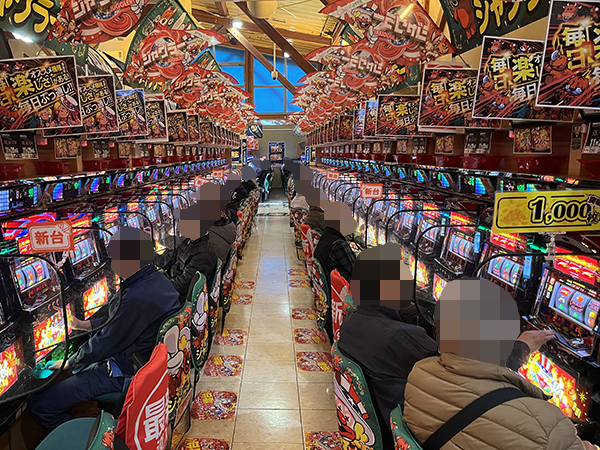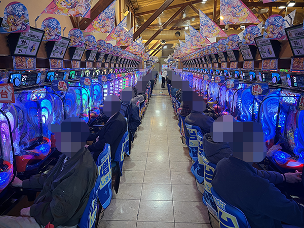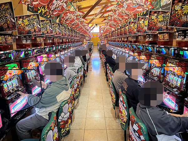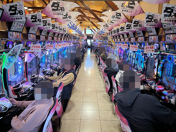 店内には老若男女を問わずプレイヤーが集合。パチンコ・パチスロの各シマから活気が感じられた。