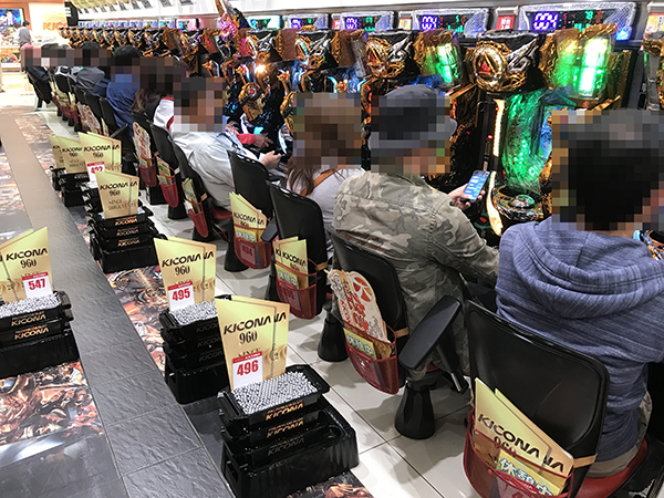 20円パチスロでは、「バジリスク~甲賀忍法帖~絆」をはじめ、「パチスロ北斗の拳 転生の章」やミリオンゴッドシリーズにおいて華麗なパフォーマンスを披露するプレイヤーを多数確認。その表情は明るく、多くのプレイヤーが機種の魅力を堪能できているように思えた。