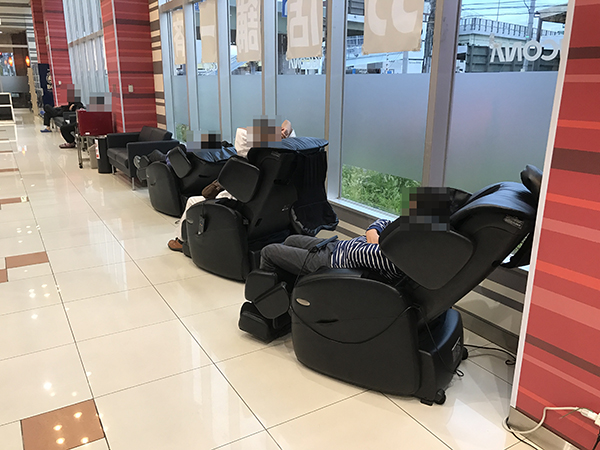 こまめに清掃をおこなっているため、常に快適な空間で遊技に集中できる環境であることを実感。マンガやマッサージチェアを用意したレストスペースは利用者も多く、つかの間の休息を思う存分リフレッシュしているようだ。