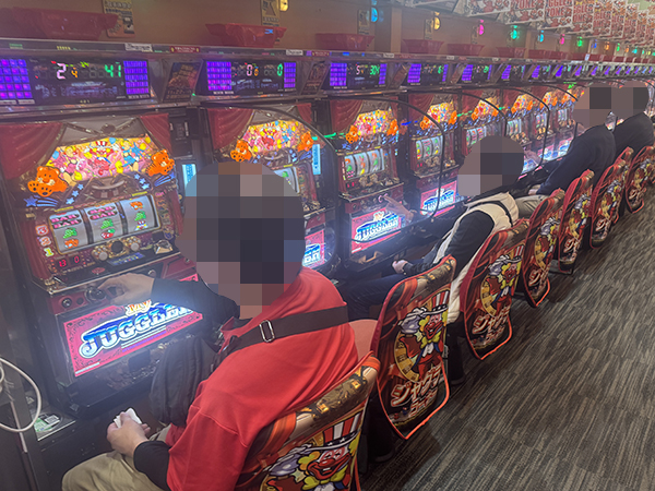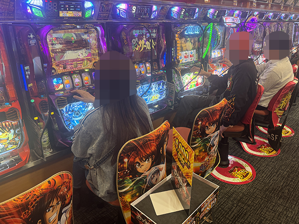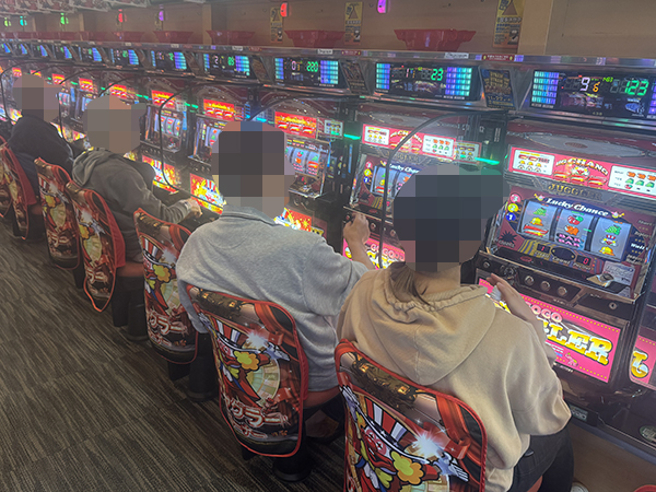 500円/90枚パチスロの稼働も高い。楽しそうにレバーを叩くプレイヤーの姿を複数目撃している。