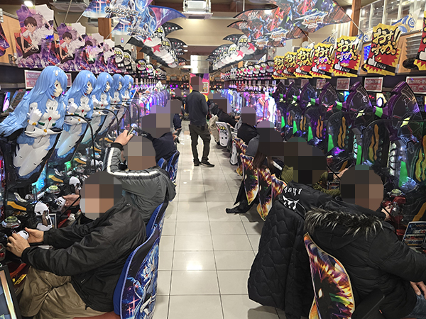 店内では貸し玉料金を問わず様々な機種で、心ゆくまで楽しむプレイヤーの姿が見られた。