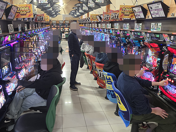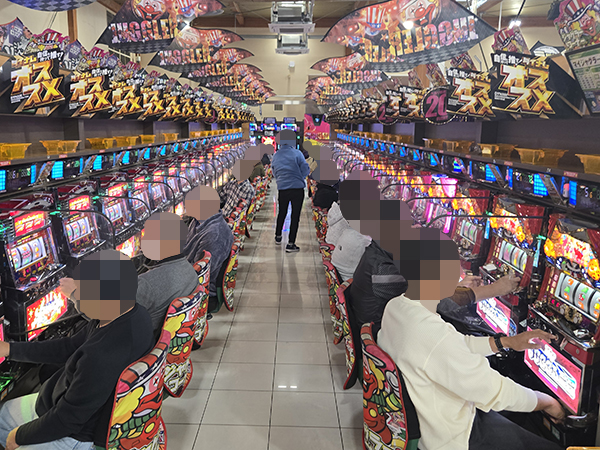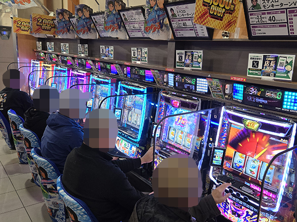 500円/90枚パチスロの稼働も高い。プレイヤーたちが夢中でレバーを叩く姿を目撃している。