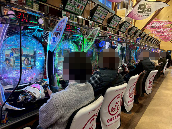 16時ごろの100円/89玉パチンコでは「eフィーバーブルーロック」などのラッキートリガー機や、「P冬のソナタ My Memory Sweet GORAKU Version」といった自社開発機で好調なプレイヤーが多数見受けられ、時折見せる嬉しそうな表情が印象に残っている。