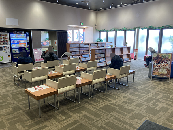 レストスペースには幅広いジャンルの漫画本が用意されており、取材時も満喫するプレイヤーが多かった。