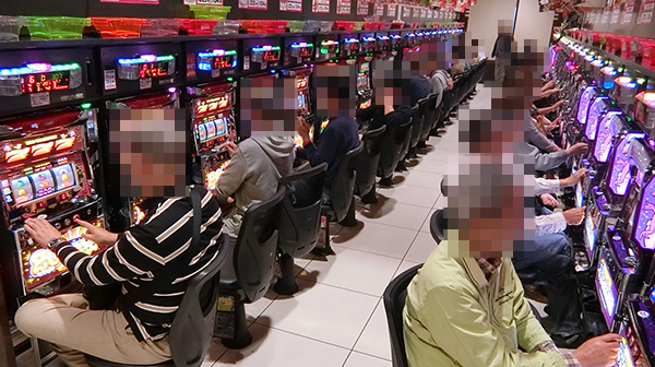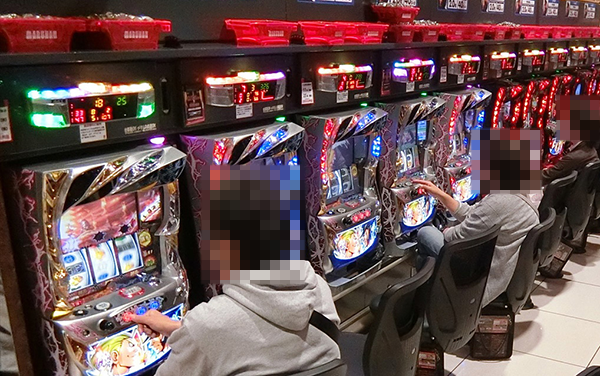 「ニューアイムジャグラーEX」や「ハッピージャグラーVⅡ」など、さまざまな場所が活気づいていた。