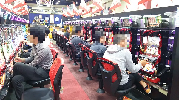ジャグラーコーナーは機種を問わず多くのプレイヤーから支持を集めている。告知ランプがシマ内を明るく照らしているかのように、コーナー全体が盛り上がりをみせていた。