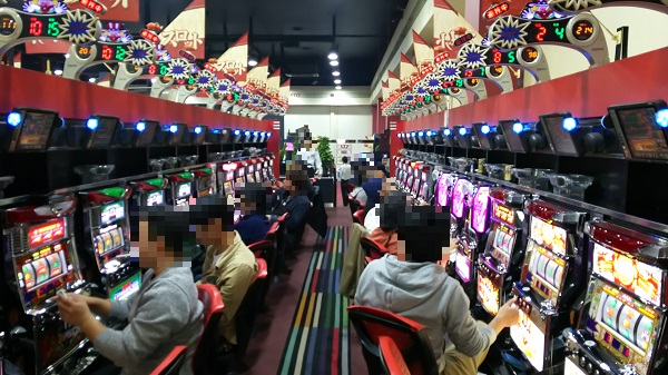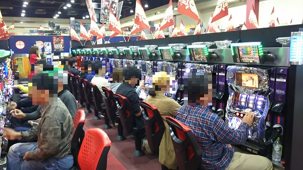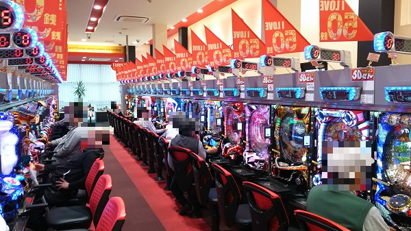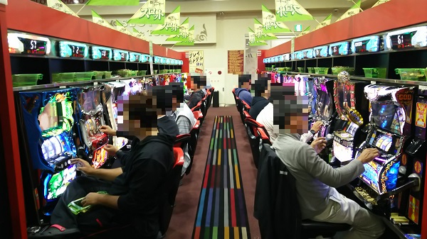 午後になった店内では、20円スロットコーナーが盛況。「バジリスク~甲賀忍法帖~絆」や「押忍!番長3」では、理想の展開を掴もうと、真剣なまなざしで遊技をするプレイヤーで盛り上がりをみせていた。