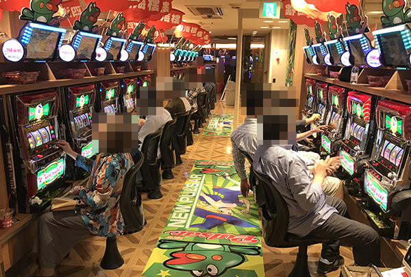 ジャグラーシリーズや沖スロに対する支持も厚く、プレイヤーたちはイキイキとした表情で遊技をはじめていた。