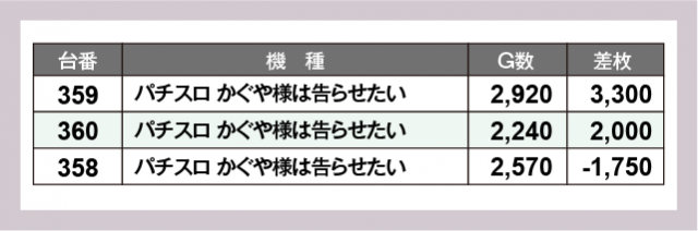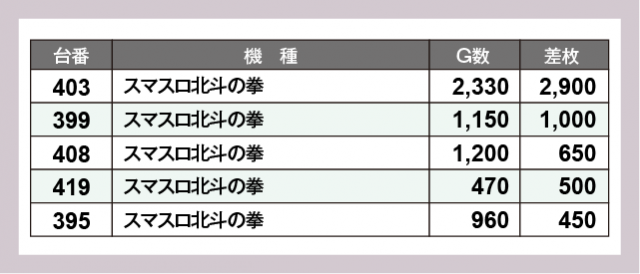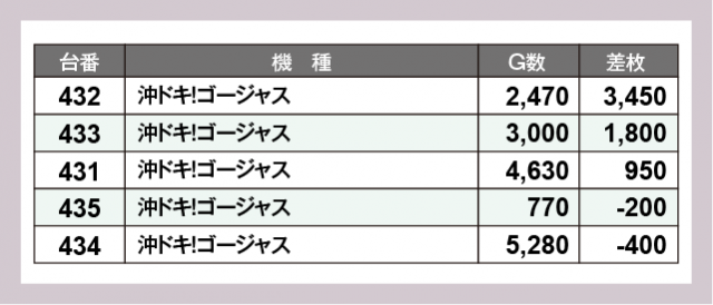 ※差枚数順に掲載しています