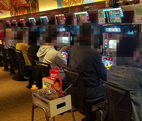 夕方頃の4円パチンコにおいては、「CRぱちんこ必殺仕事人Ⅴ」や「CR牙狼GOLDSTORM翔」、海物語シリーズなどが盛況。プレイヤーの笑顔からは、遊技を満喫していることも伝わってきた。