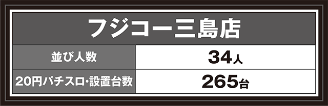 11月10日、静岡県三島市にある「フジコー三島店」へと向かった。今回の取材は、「超華盛り取材」だ。笑顔に彩られたホールを舞台に、華やかに盛り上がる機種を発見した。