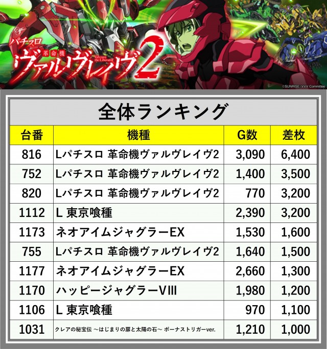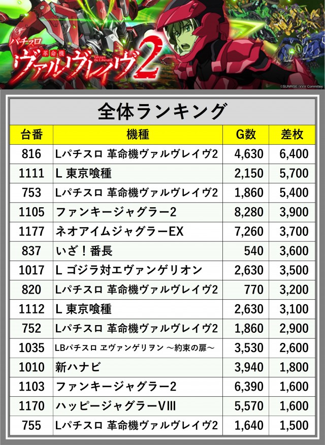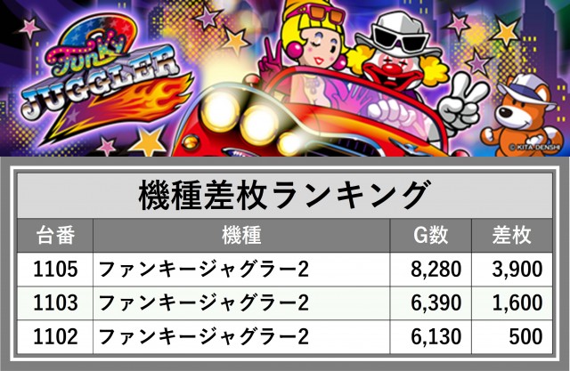 厳選された取材対象機種をはじめ、その他スロット全体から好記録が飛び出した!プレイヤーが楽しんだ1日を下記データにて振り返ってみて欲しい。