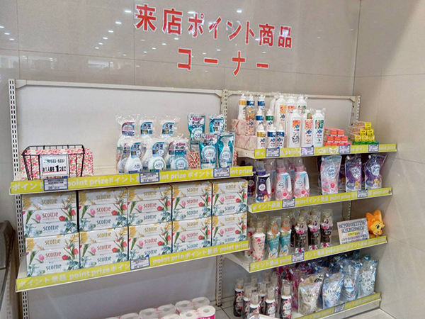 景品コーナーには来店ポイントで交換できるアイテムが用意されており、プレイヤーから好評を得ていた。