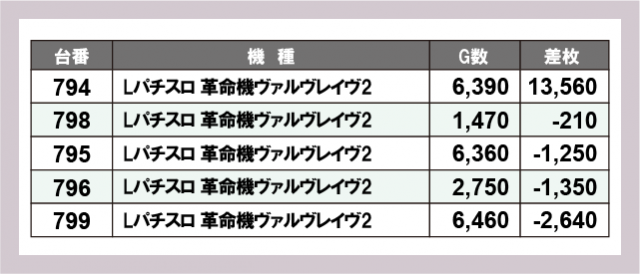 ※差枚数順に掲載しています