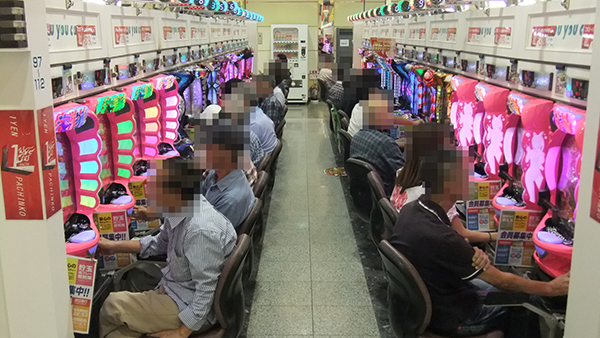 パチンココーナーをのぞいて見ると、1円パチンコが大盛況。