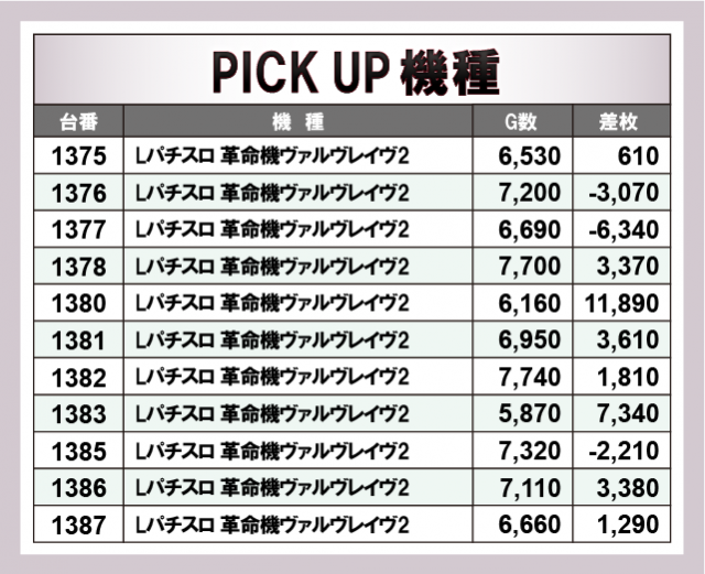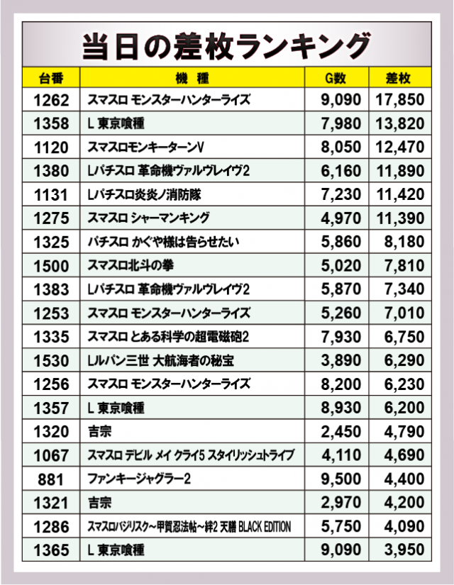 ※差枚数順に掲載しています。