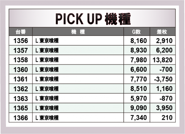 ※台番順に掲載しています。