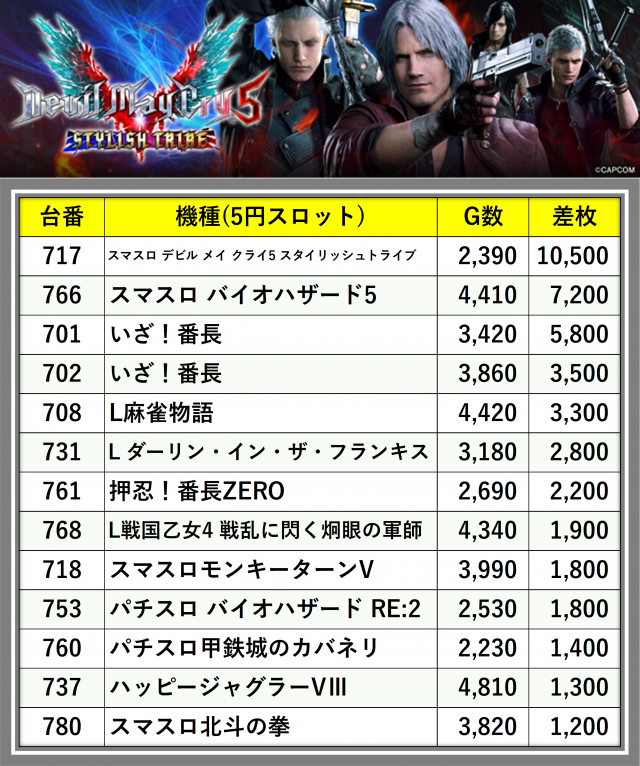 厳選された取材対象機種をはじめ、その他スロット全体から好記録が飛び出した!プレイヤーが楽しんだ1日を下記データにて振り返ってみて欲しい。