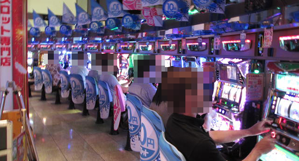 20円パチスロで最も人気となっていたのはジャグラーシリーズで、老若男女問わず大勢のプレイヤーで活気づいていた。