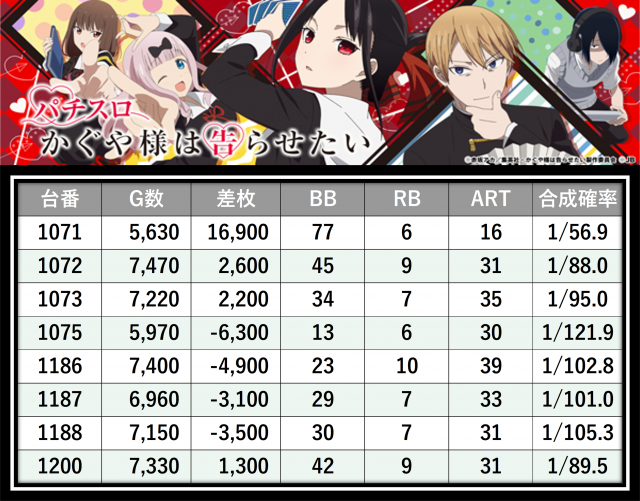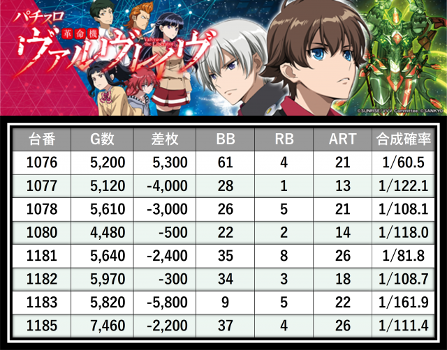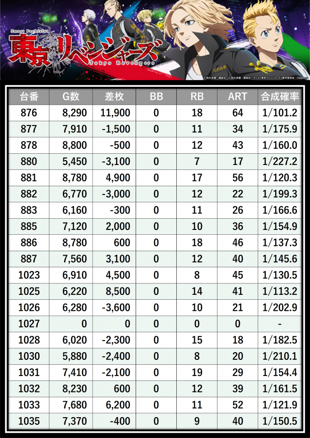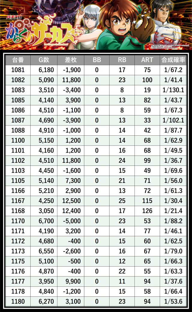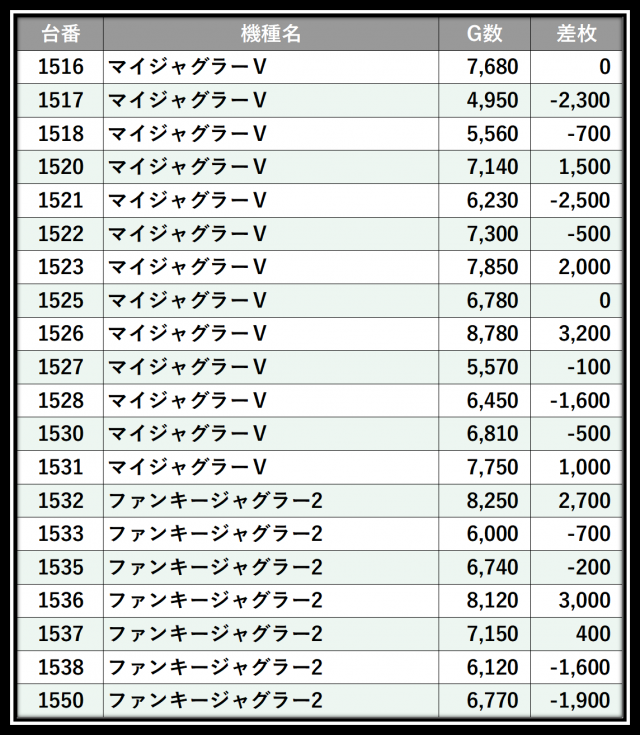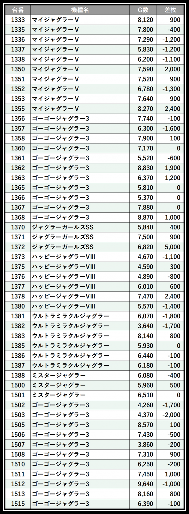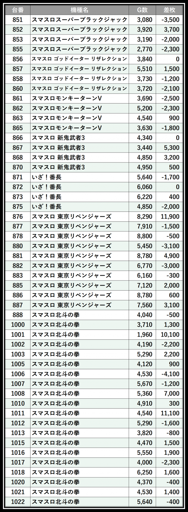 ※差枚数順に掲載しています