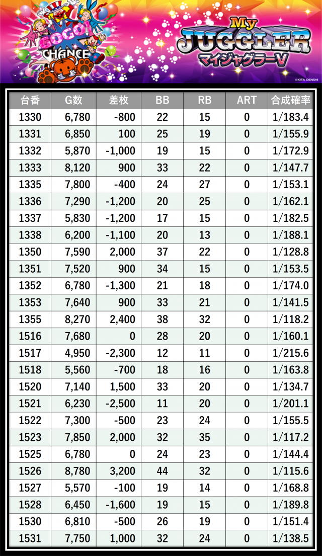 その結果の中から、ぱちタウンが注目すべきポイントを厳選してユーザーにお届け!プレイヤーが楽しんだ一日を下記データにて振り返ってみて欲しい。
