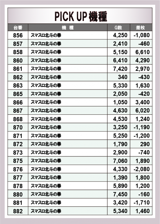 PICK UP機種では、各所からしっかりと見どころが確認できた。とりわけ『スマスロモンキーターンV』は+10,090枚を筆頭に高稼働が続き、周辺でも似たような良い流れが感じられる場面が見られた。『スマスロ とある科学の超電磁砲2』も8,000枚OVERが誕生し、シリーズらしい瞬発力を発揮。一方『スマスロ北斗の拳』でも複数台がしっかりプラスに寄せており、近い配置で動きの良さが続くような印象も。全体的に、どの機種もエリアごとにまとまりを感じるシーンがあったことから、ポテンシャルが随所で引き出された内容となった。