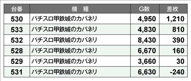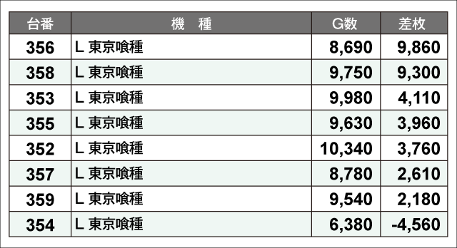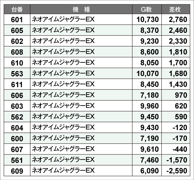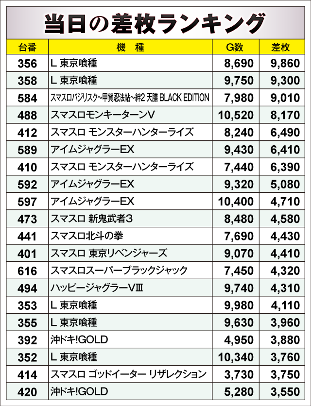 当日の差枚ランキング
