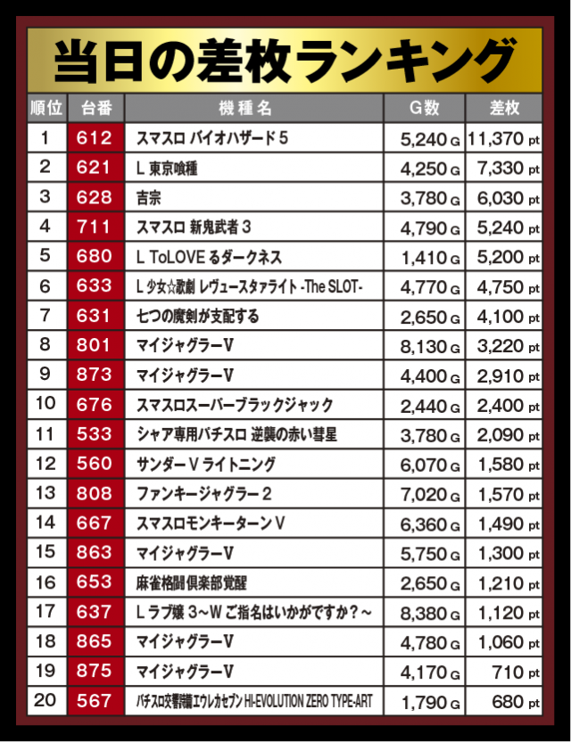 差枚ランキング
