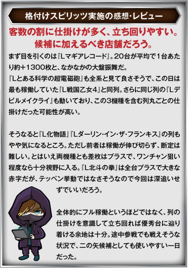 その結果の中から、ぱちタウンが注目すべきポイントを厳選してユーザーにお届け!プレイヤーが楽しんだ一日を下記データにて振り返ってみて欲しい。