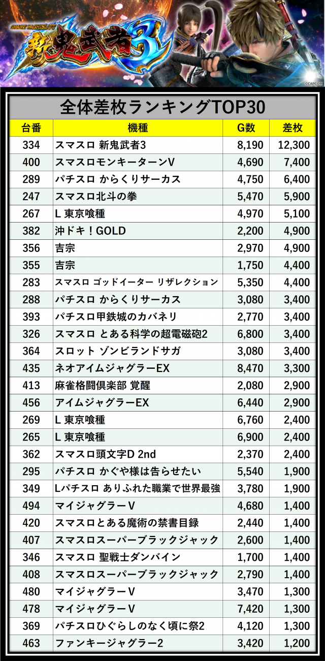 その結果の中から、ぱちタウンが注目すべきポイントを厳選してユーザーにお届け!プレイヤーが楽しんだ一日を下記データにて振り返ってみて欲しい。