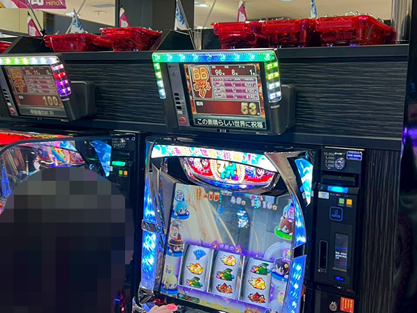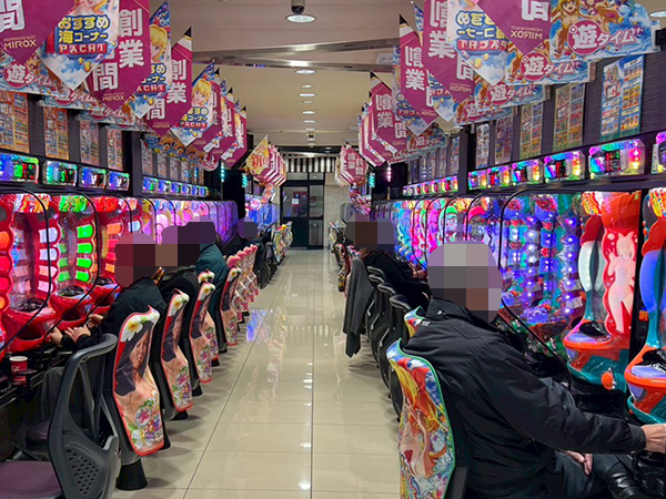 14時ごろの200円/178玉パチンコの様子を見ると、「Pまわるん大海物語4スペシャル Withアグネス・ラム 119ver.」や「PAスーパー海物語IN地中海2」などの海物語シリーズが大盛り上がり。機種性能を存分に発揮するプレイヤーを目の当たりにしている。