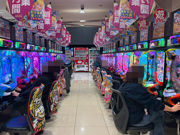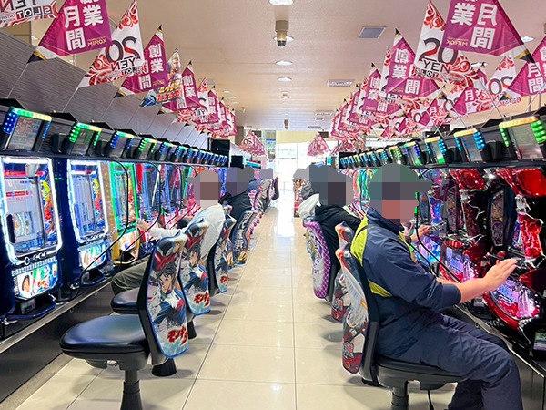 機種構成が魅力的な1000円/178枚パチスロを見ると、ほぼ満席となるほどの支持を得ていた。