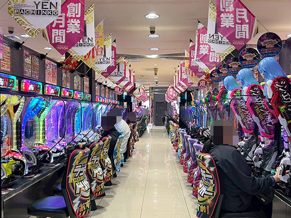 店内には老若男女を問わずプレイヤーが集合。パチンコ・パチスロの各シマから活気が感じられた。