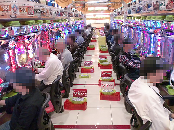 14時ごろに4円パチンコをチェックすると、「ぱちんこCR真・北斗無双」や「ぱちんこCR北斗の拳7 転生」など北斗の拳シリーズが盛況に。機種のポテンシャルを存分に発揮しているプレイヤーが数多く見受けられ、シマ全体が活気を帯びていた。
