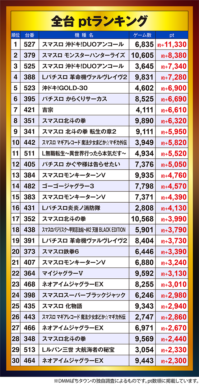 ※なお、本記事中のデータは全てDMMぱちタウンの独自調査によるものです
