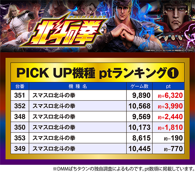 「スマスロ北斗の拳」は4台が約+1,800ptオーバー。