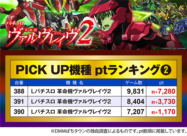 「Lパチスロ 革命機ヴァルヴレイヴ2」では、388番台が約+7,280pt!!