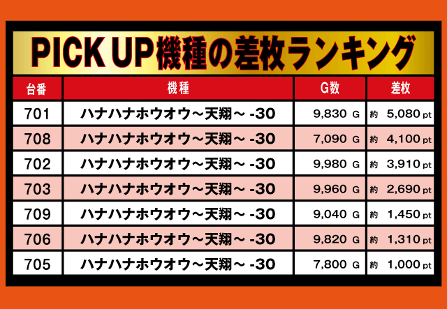 『ハナハナホウオウ~天翔~-30』はプラスpt台がすべて+1,000ptオーバーと絶好調で、プレイヤーを心から楽しませていた。