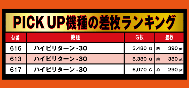 『ハイビリターン-30』も高稼働ではあったが、惜しくも大きなptを獲得できなかったようだ。