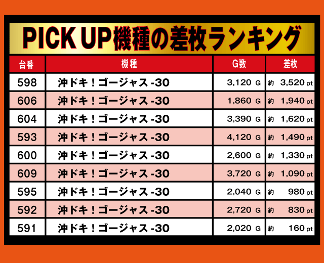『沖ドキ!BLACK』や『沖ドキ!GOLD-30』は回転数が少ない台も見られたが、きっちりプラスで終わる台が多かった。