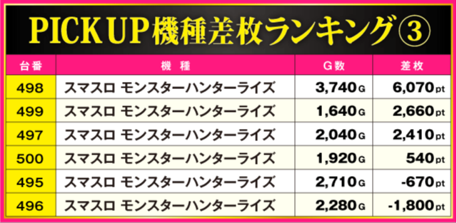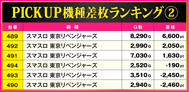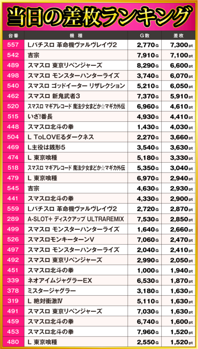 当日の差枚ランキング
