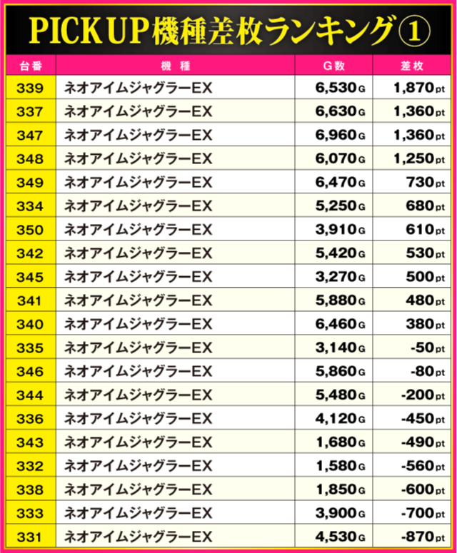 ※差枚pt順に掲載しています。