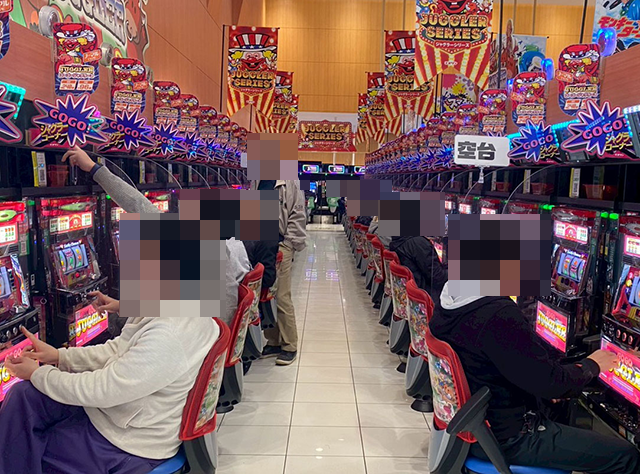 「ゴーゴージャグラー3」や「ネオアイムジャグラーEX」などのジャグラーシリーズも人気を集め、にぎわいをみせていた。