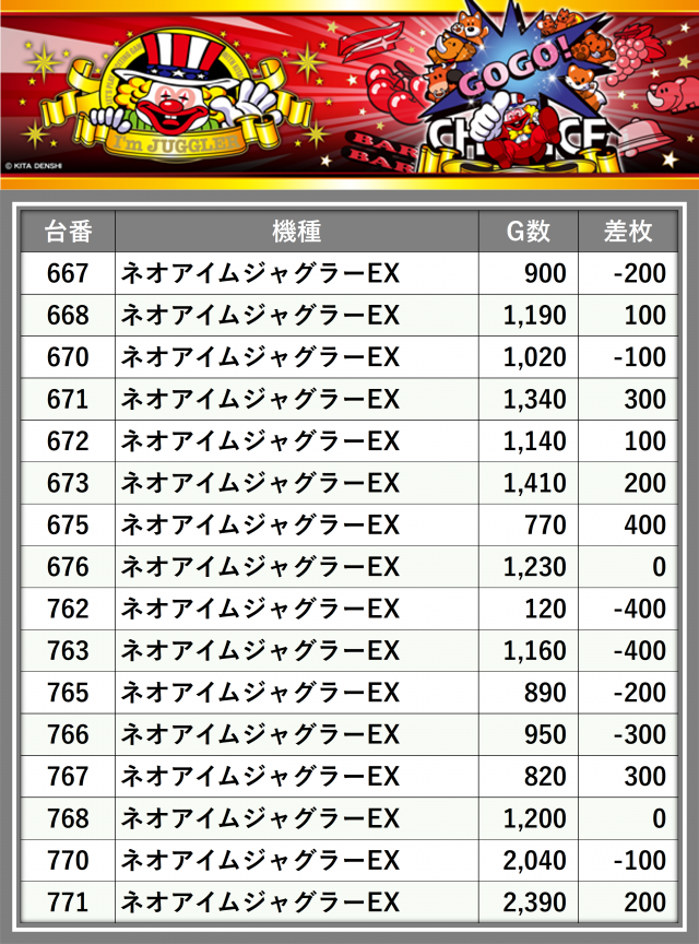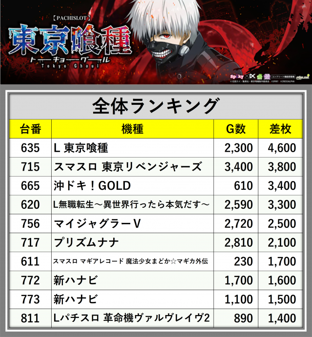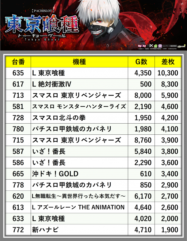 ※差枚数順に掲載しています