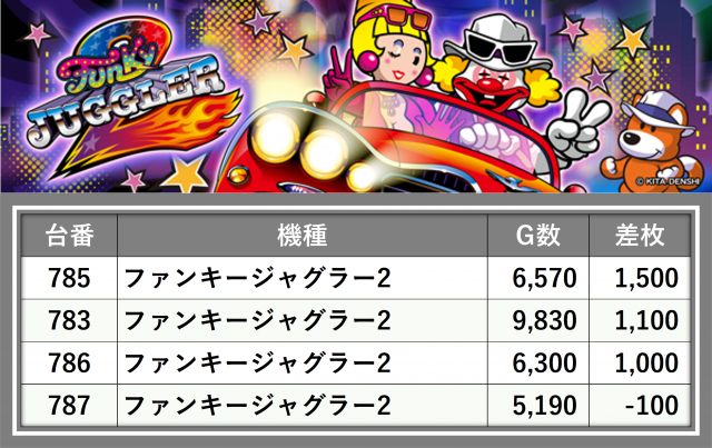 厳選された取材対象機種をはじめ、その他スロット全体から好記録が飛び出した!プレイヤーが楽しんだ1日を下記データにて振り返ってみて欲しい。