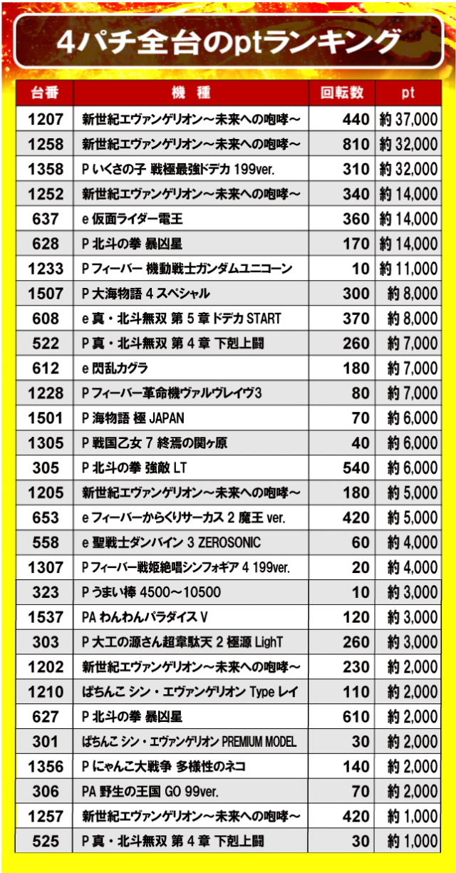 ②4パチ全台のptランキング